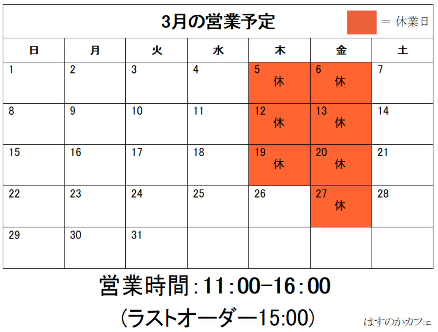 ⇒ 2026年3月の営業予定